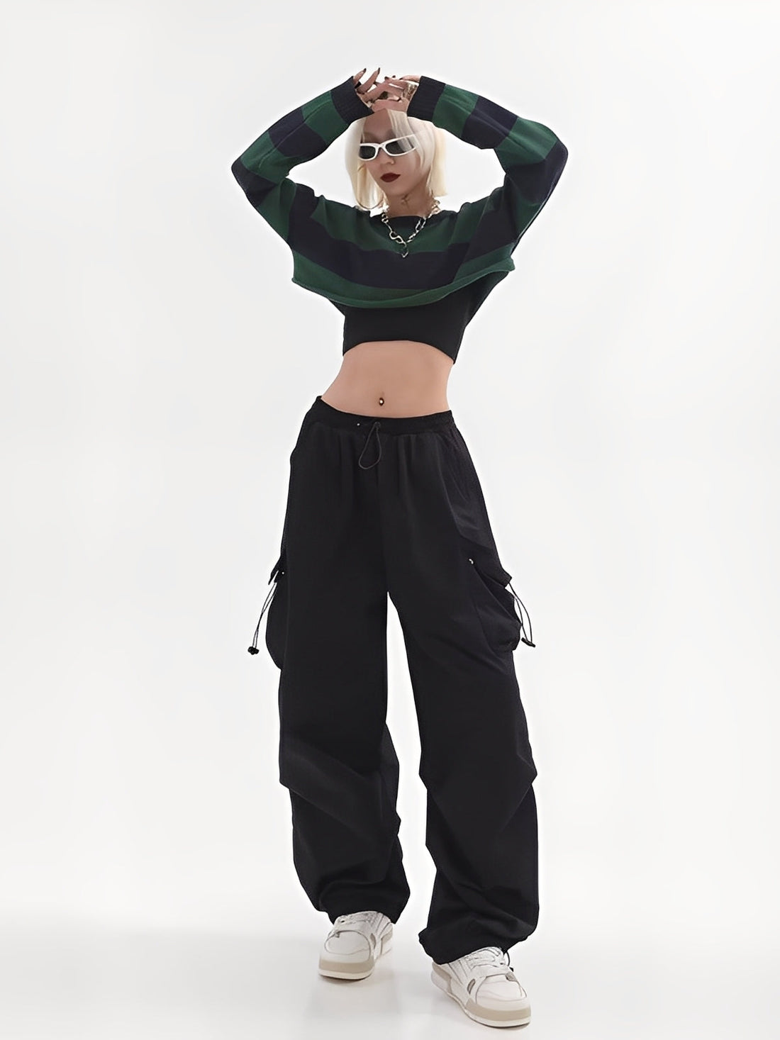 Clotilde - Pantaloni cargo a vita alta e elastici per donna