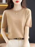 Arricchisci il tuo guardaroba di maglieria con il maglione a maniche corte in lana e cashmere « Blandine », dove il lusso incontra il comfort quotidiano.