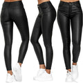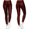 Dina – Pantaloni da donna in pelle vegana PU stretch, vita alta
