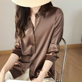 Eleva il tuo guardaroba con la nostra camicetta in satin a maniche lunghe e bottoni, dove l'eleganza incontra il comfort quotidiano.